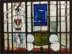 - verbunden durch Bleisprossen, die zugleich Konturen des Bildes betonen